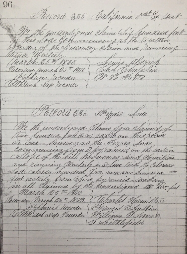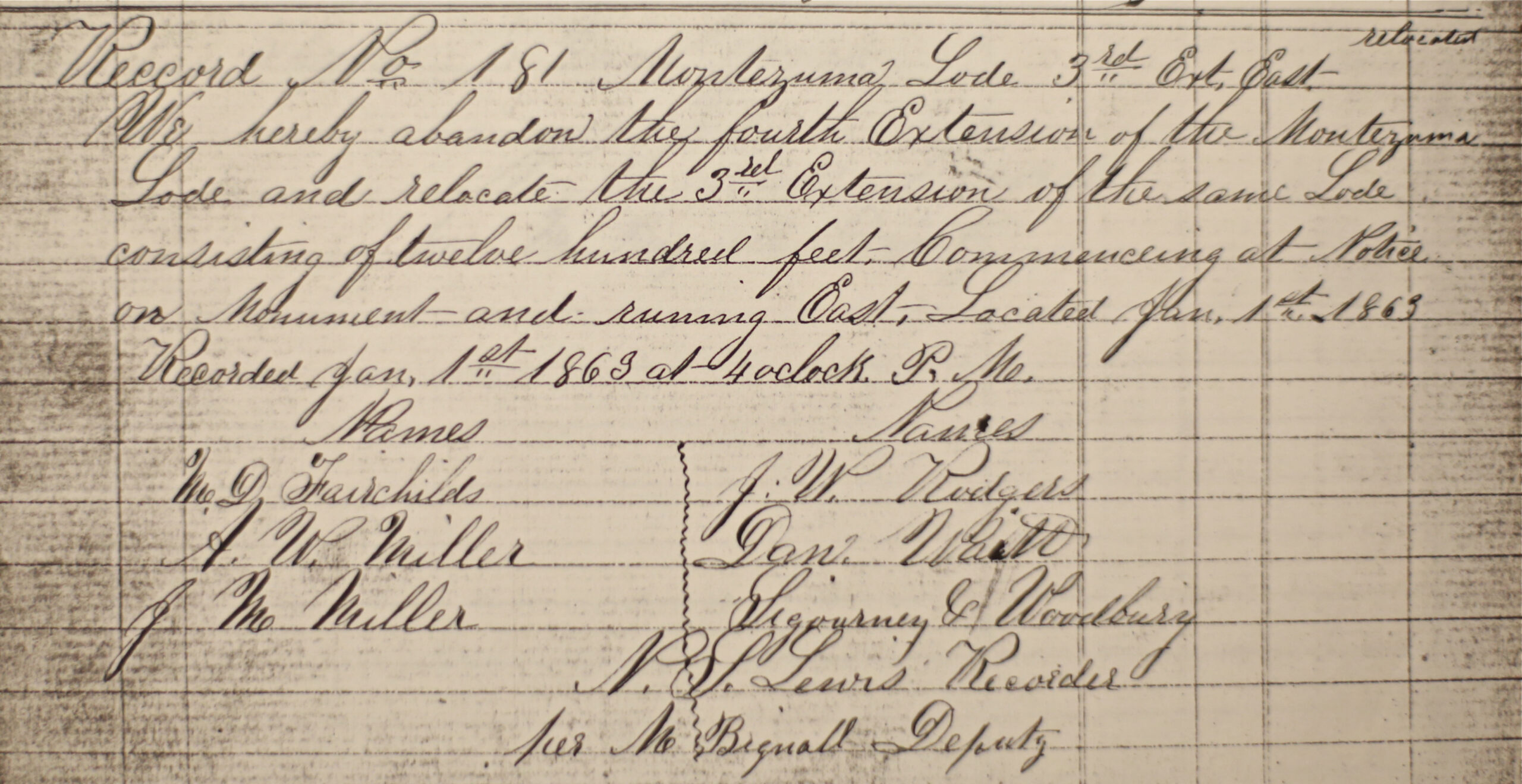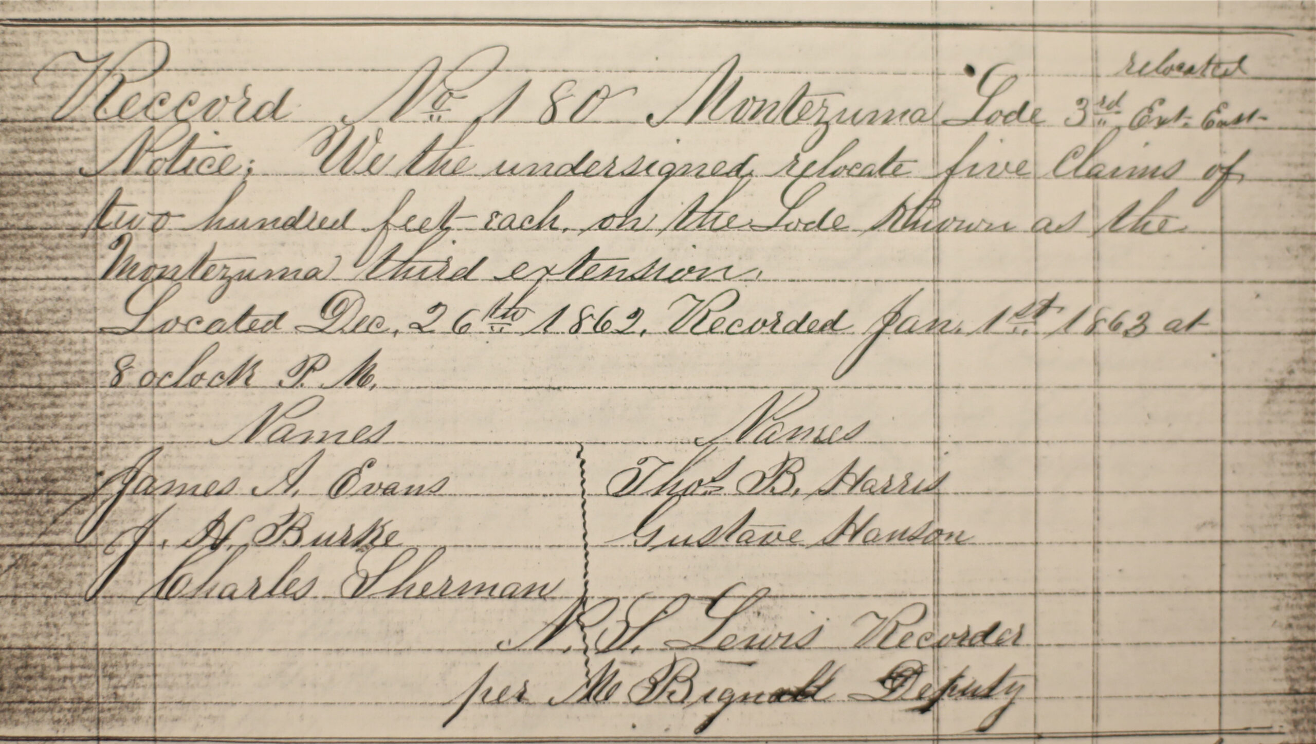 In 1907, Wesselhoft sold to Richard Hotaling, son of Anson P. Hotaling, Liquor Distributor of San Francisco, who patented the Montezuma Consolidated Mine Loding Claim in 1911.