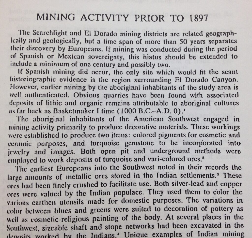 First discoveries were made by the Spanish around 1775, who named the area El Dorado. One of the biggest mining booms of Nevada began almost 100 years later, when in 1859 new gold and silver discoveries were made. The rush to the Eldorado Canyon began in 1961, several camps were established and a landing site 4 miles down at the Big River. The Montezuma Mine claims were staked during the heyday of the Eldorado Canyon gold rush, the most prominent mine being the notorious Techatticup.